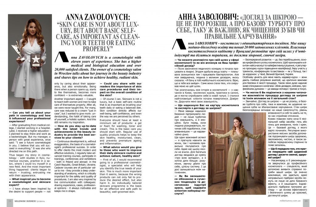 ANNA ZAVOLOVYCH: “SKIN CARE IS NOT ABOUT LUXURY, BUT ABOUT BASIC SELF-CARE, AS IMPORTANT AS CLEANING YOUR TEETH OR EATING PROPERLY”