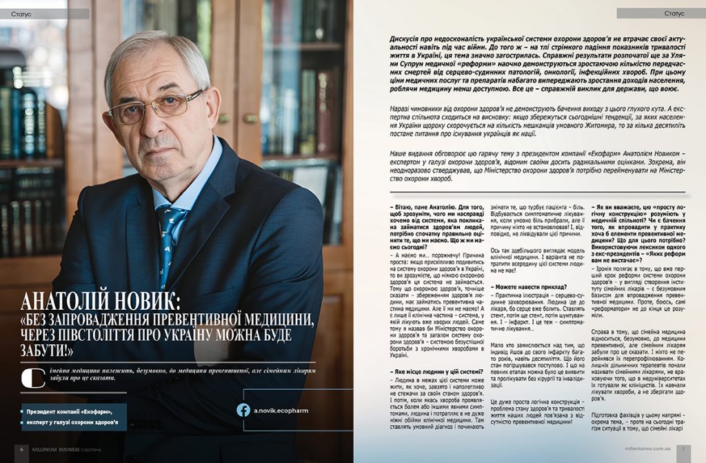 Наше видання обговорює цю гарячу тему з президентом компанії «Екофарм» Анатолієм Новиком – експертом у галузі охорони здоров’я, відомим своїми досить радикальними оцінками. Зокрема, він неодноразово стверджував, що Міністерство охорони здоров’я потрібно перейменувати на Міністерство охорони хвороб.