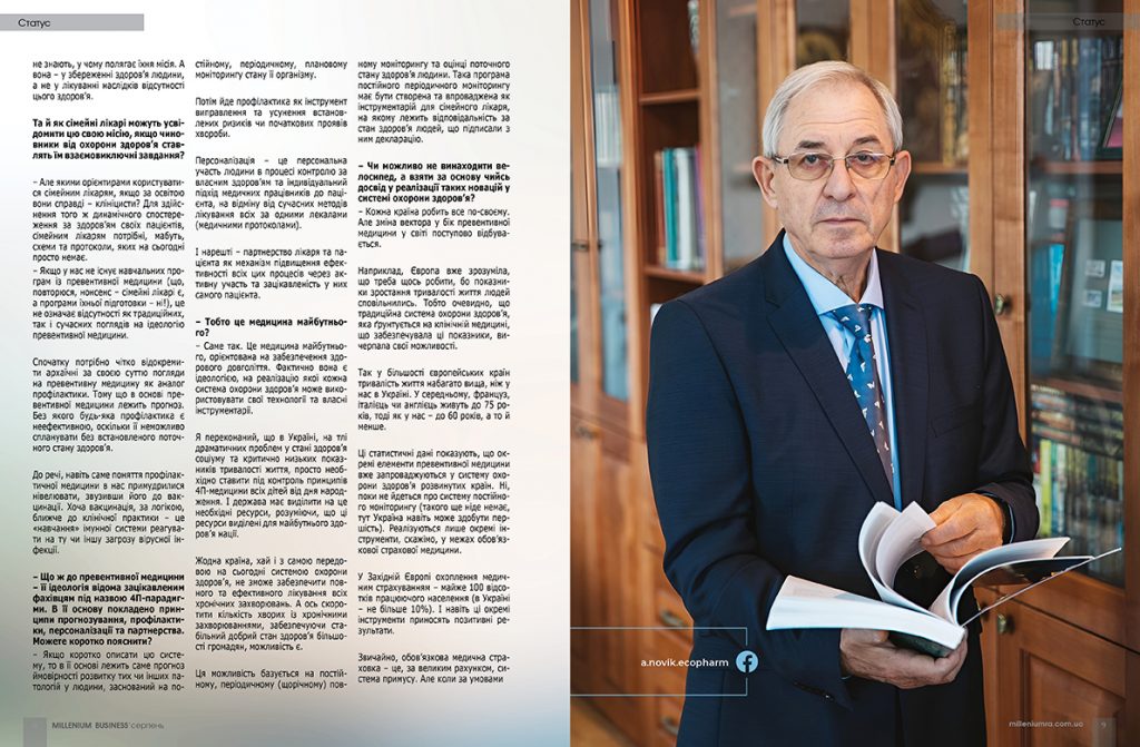 – А маємо ми… порожнечу! Причина проста: якщо прискіпливо подивитись на систему охорони здоров’я в Україні, то ви зрозумієте, що ніякою охороною здоров’я ця система не займається. Тому що охороною здоров’я, точніше сказати – збереженням здоров’я людини, має займатись превентивна частина медицини. Але її ми не маємо! А є лише її клінічна частина – система, у якій лікують вже хворих людей. Саме тому я назвав би Міністерство охорони здоров’я та загалом систему охорони здоров’я – системою безуспішної боротьби з хронічними хворобами в Україні.