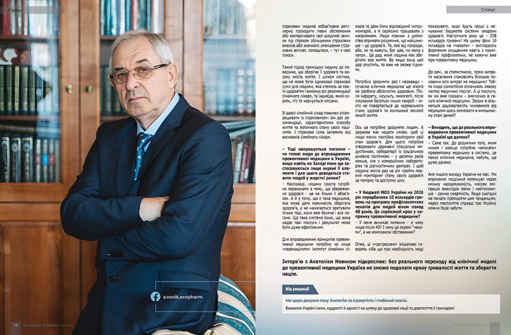 Інтерв’ю з Анатолієм Новиком підкреслює: без реального переходу від клінічної моделі до превентивної медицини Україна не зможе подолати кризу тривалості життя та зберегти націю.
