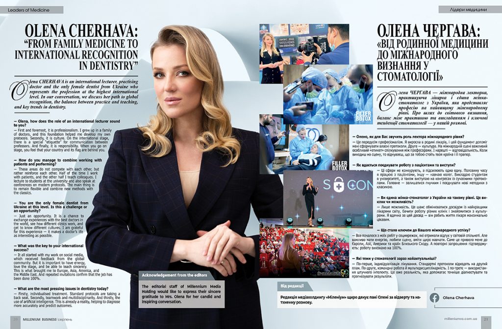 Оlena CHERHAVA is an international lecturer, practising doctor and the only female dentist from Ukraine who represents the profession at the highest international level. In our conversation, we discuss her path to global recognition, the balance between practice and teaching, and key trends in dentistry.