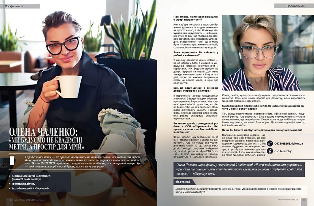 Її професійний шлях — це приклад послідовності, наполегливості та відданості справі. Вона працює там, де рішення мають вплив не лише на цифри чи угоди, а й на людські долі. Олена Чаленко переконана: нерухомість — це більше, ніж квадратні метри. Це — нові початки, історії та майбутнє, яке ми творимо разом.