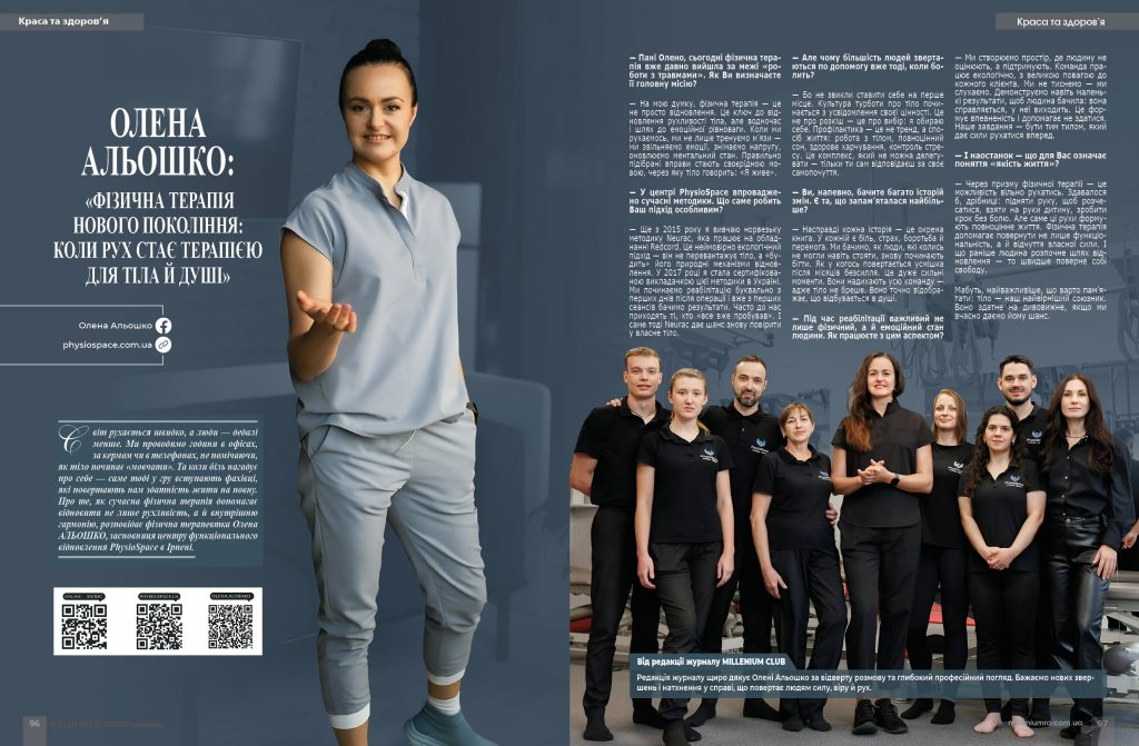 Світ рухається швидко, а люди — дедалі менше. Ми проводимо години в офісах, за кермом чи в телефонах, не помічаючи, як тіло починає «мовчати». Та коли біль нагадує про себе — саме тоді у гру вступають фахівці, які повертають нам здатність жити на повну. Про те, як сучасна фізична терапія допомагає відновити не лише рухливість, а й внутрішню гармонію, розповідає фізична терапевтка Олена АЛЬОШКО, засновниця центру функціонального відновлення PhysioSpace в Ірпені.