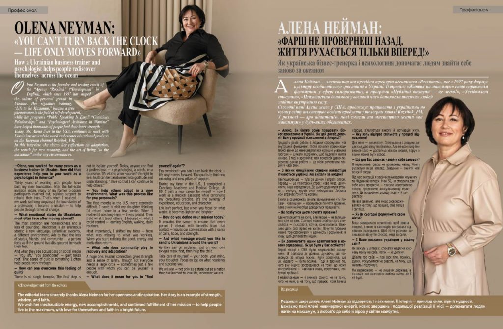Today, Ms. Alena lives in the USA, continues to work with Ukrainians around the world and creates educational products on the Telegram channel Rozvitok_FM.