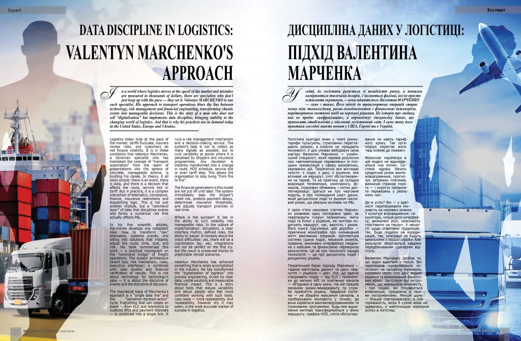 In a world where logistics moves at the speed of the market and mistakes are measured in thousands of dollars, there are specialists who don’t just keep up with the pace — they set it. Valentyn MARCHENKO is one such specialist. His approach to transport operations blurs the line between technology, risk management and financial engineering, transforming chaotic events into manageable decisions. This is the story of a man who does not sell “digitalisation” but implements data discipline, bringing stability to the changing world of logistics. And that is why his practices are in demand today in the United States, Europe and Ukraine.