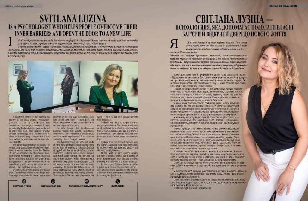 Svitlana Luzina is a psychologist who helps people overcome their inner barriers and open the door to a new life