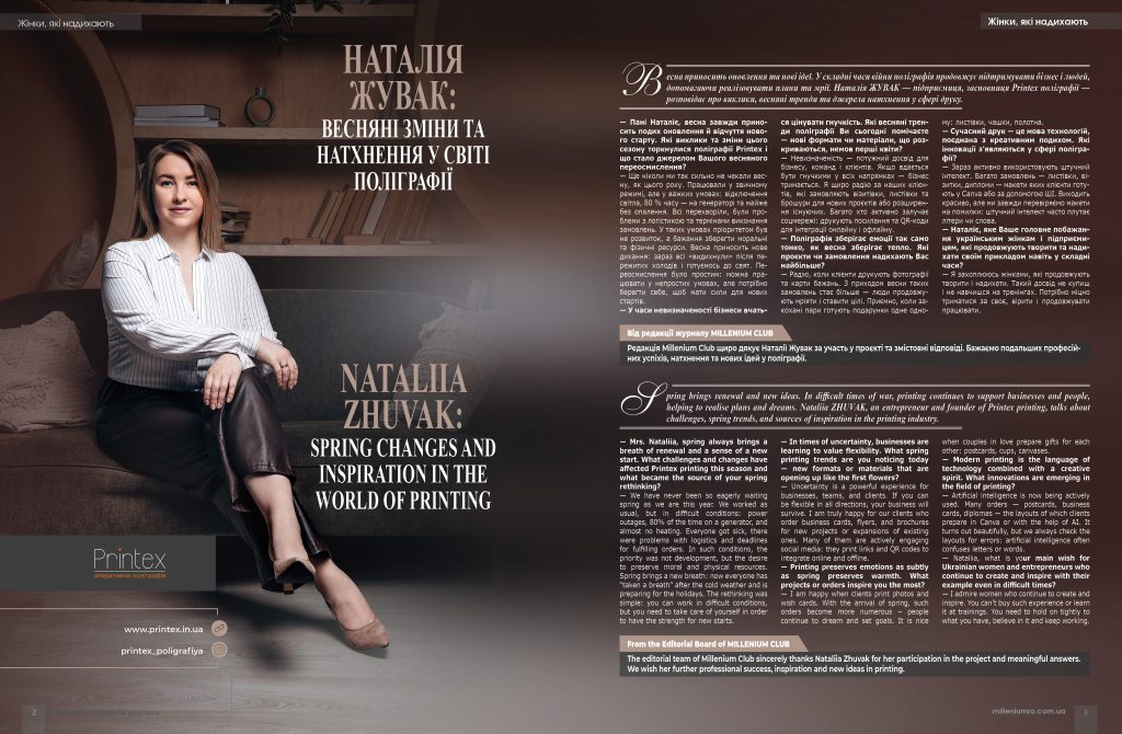 The editorial team of Millenium Club sincerely thanks Nataliia Zhuvak for her participation in the project and meaningful answers. We wish her further professional success, inspiration and new ideas in printing.